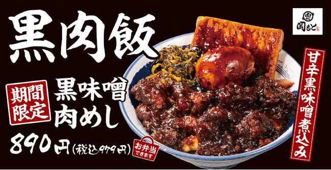 肉めし岡もとでは期間限定メニューとして、看板メニューの「肉めし」を濃厚な黒味噌仕立てにした『黒味噌肉めし』を販売いたします。