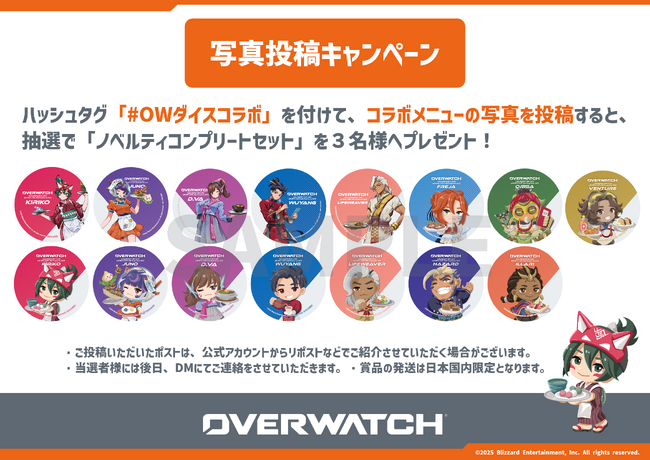 ハッシュタグ「#OWダイスコラボ」を付けて、コラボメニューの写真を投稿すると、