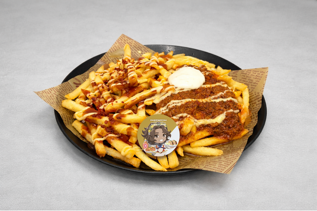 プティーン&メキシカンポテト(プティーン:フライドポテト、ベーコンチップ、グレイビーソース、チーズソース)(メキシカンポテト:フライドポテト、タコスミート、チーズソース、サワークリーム)