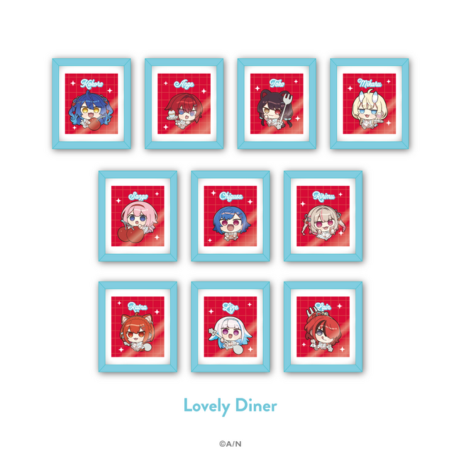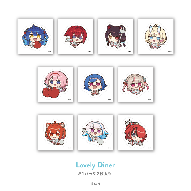 グッズラインナップは、ぬいぐるみマスコット、ランダムステッカー、ランダムフレームマグネット、アクリルジオラマ、アクリルブロックセット、シャカシャカケースキーホルダー、アクリルパーツの7種類。