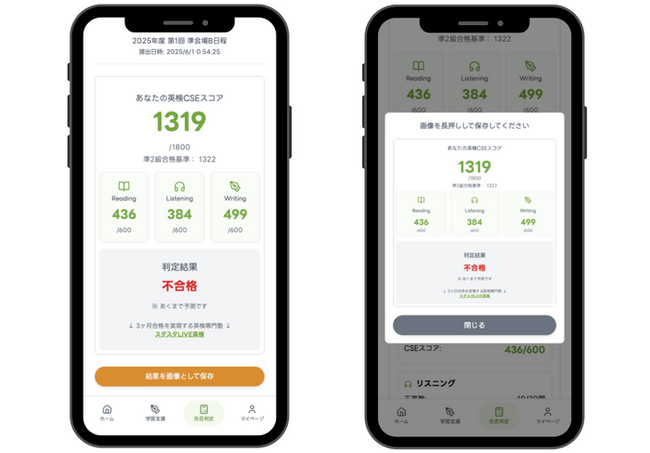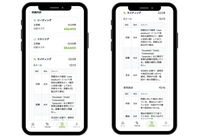 (3)結果表示:CSEスコア推定・合否の目安を確認各技能の結果をもとに、CSEスコア推定や合否の目安を表示します。