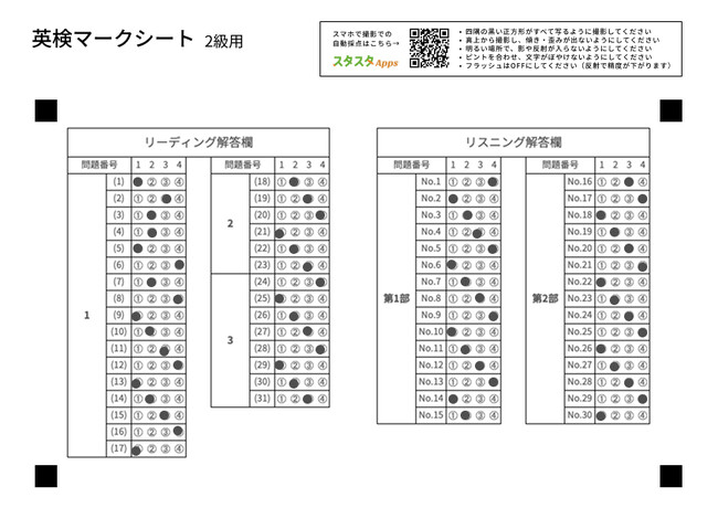 【5】参考:入力の手間を減らす機能も順次提供スタスタAppsでは、Reading/Listeningの入力負担を軽減するため、紙のマークシートPDFに記入して撮影アップロードすると入力済み状態に自動反映される機能も提供しています。