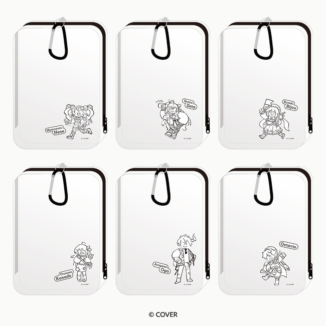 イラストレーターHERによってかわいくデフォルメ化されたアンバサダーたちをレイアウトした、クリア素材のコレクションポーチです。バッグ等に取り付けやすいカラビナ付きです。