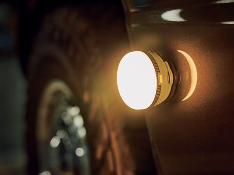 天面にはマグネットが仕込んであるので、車で作業するときにも便利! 停電時に備えて、冷蔵庫に付けておいても安心です!