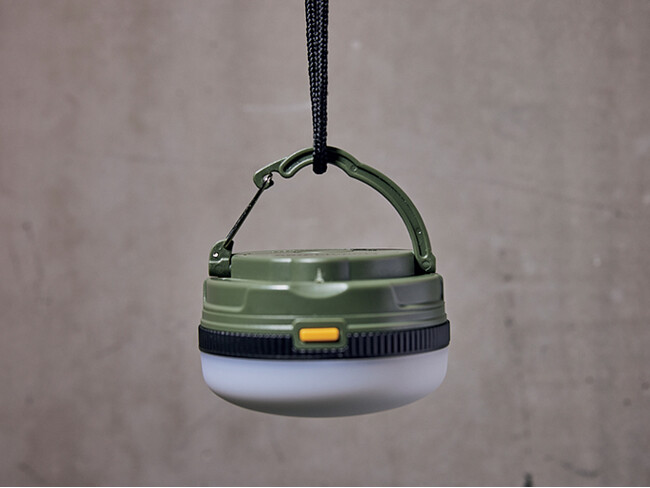 カラビナ付きなので吊り下げて使用できます! テントの天井に付いているフックはもちろん、バックパックのループに下げてもOK。犬のお散歩バッグの取っ手に付けても便利です!