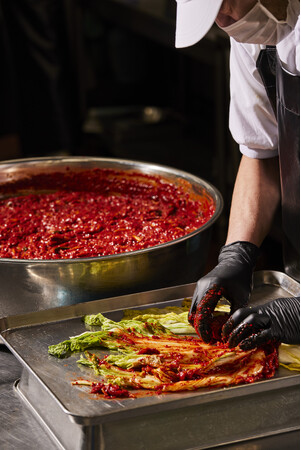 ・熟練職人がその場で仕込む、漬けたて白菜キムチの提供