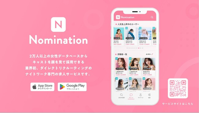 Nomination(ノミネーション)は、ナイトワーク業界に特化したダイレクトリクルーティング型の求人プラットフォームです。