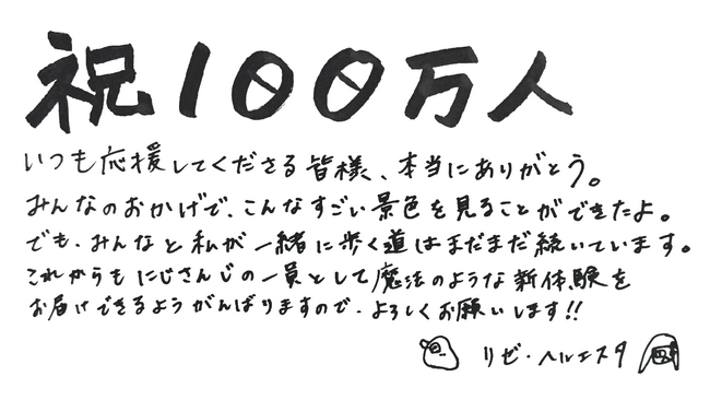 2026年2月16日(月)、当社が運営するVTuber / バーチャルライバーグループ「にじさんじ」所属のライバー「リゼ・ヘルエスタ」が、YouTubeチャンネル登録者数100万人を突破いたしました。