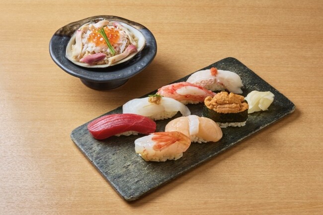 1,000匹に1匹しか取れない希少なゴジラエビやタラバ&ズワイガニなど旬の握り10貫と小鉢が楽しめるセット