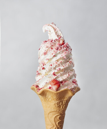 北海道産牛乳とリコッタチーズのソフトクリームにドライ苺とチーズをトッピング。