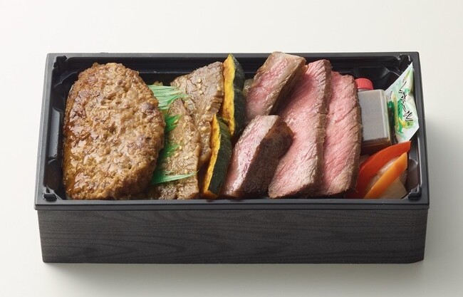はこだて大沼黒牛のすき焼きにステーキを重ねたボリューム満点の4層弁当