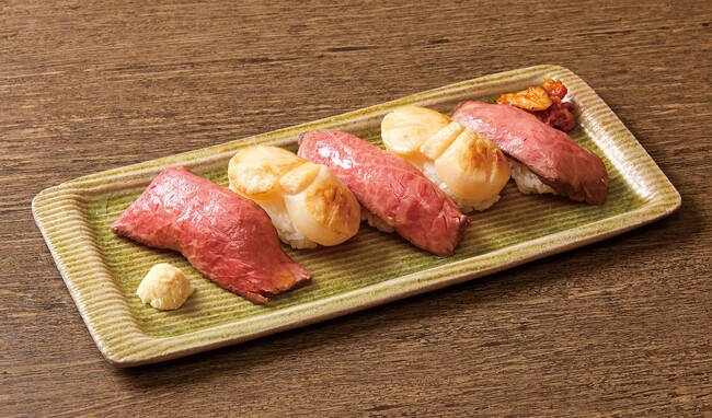 <ローストビーフ沙蘭>A5おぐに和牛ローストビーフと炙ホタテの握り (1折) 2,700円 ※各日30折限り ※10日(火)からの出店