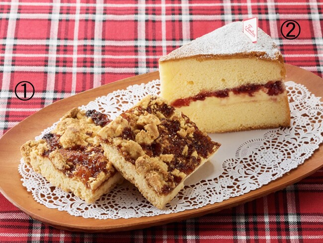 <チップトリーティールーム>1.ショートブレッド ジャムバー(1個) 476円 2.ヴィクトリアスポンジケーキ(1個) 756円