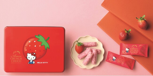 さらに、今年は新たに「あられクランチチョコ いちご味 ハローキティ 缶」が加わり合計4缶と、デザインも味もパワーアップいたしました。