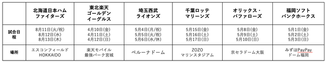 パ・リーグ6球団 特別演出試合日程
