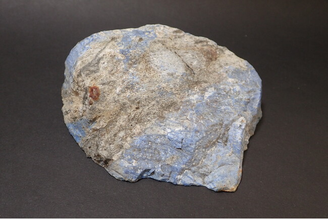 糸魚川産ラピスラズリの外観。表面は風化により灰色を帯びた冴えない青色を呈する。