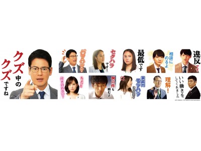 唐沢寿明、広瀬アリス、古川雄輝ら豪華キャストがまさかのLINEスタンプに!? 唐沢寿明主演ドラマ『ハラスメントゲーム』LINEスタンプ販売開始!