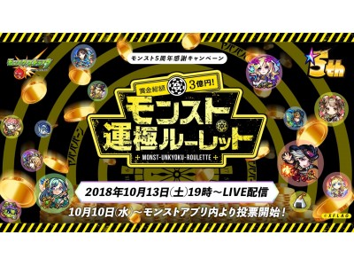 【モンスト5周年】「賞金総額3億円!モンスト運極ルーレット」の開催決定
