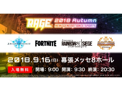 国内最大規模のeスポーツの祭典「RAGE 2018 Autumn」 の全体概要発表!AbemaTV、OPENREC.tvの同時ライブ配信決定。