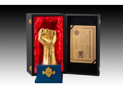 【超速報】ロビンマスクを本気で作ったことで話題になった企業が、今度はファイトマネー100億円!英雄マニー・パッキャオに世界に一つしかない伝説の左拳・24金箔モデルを贈呈