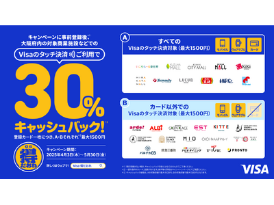 「大阪エリア振興プロジェクト」の一環として『大阪限定 Visaのタッチ決済キャッシュバックキャンペーン 第6弾』明日4月3日より開始