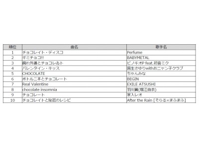 バレンタインデーに歌いたい♪ チョコっと甘い「バレンタイン」ソング DAMカラオケリクエストランキングTOP10 Perfumeの大人気ソング「チョコレイト・ディスコ」が堂々の1位に