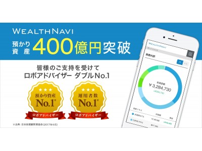 預かり資産・運用者数No.1 ロボアドバイザー「WealthNavi(ウェルスナビ)」が預かり資産400億円を突破
