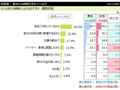 ~夏休みの取得予定時期・・・”会社で決まっている”が半数。~
