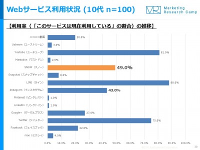 10代の約半数が「SNOW」を利用。「Instagram」の利用率を抜く