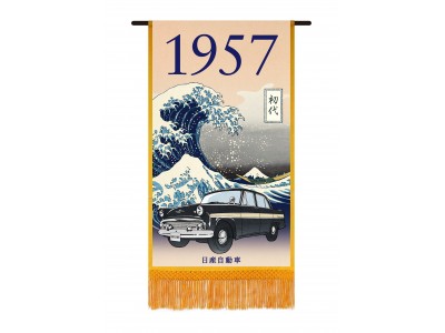 大相撲五月場所に「スカイライン懸賞幕」が登場!「スカイライン」歴代13モデルが浮世絵となって葛飾北斎と共演