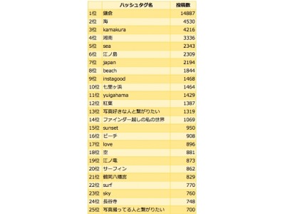 「#由比ヶ浜」と一緒につけられたハッシュタグは何か?Instagram公式認証ツールTAGRUを用いて、ハッシュタグ「#由比ヶ浜」と一緒につけられたハッシュタグランキングベスト50を発表