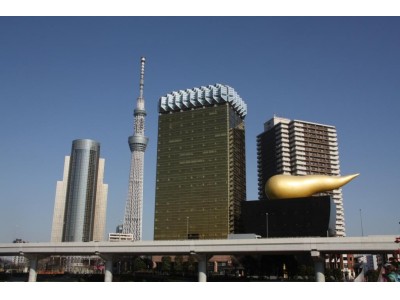 世界水の日にアサヒグループ本社ビルが青く染まる