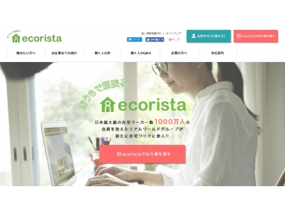 リアルワールドの子会社リアルキャリア、国内初の在宅特化型無料求人サイト「ecorista(エコリスタ)」を本格始動