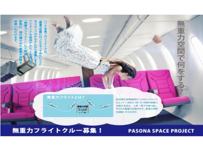 パソナ 宇宙事業プロジェクト 宇宙を感じる『無重力フライト』参加希望者募集 派遣登録社員1名を無料ご招待 日時:2016年8月20日(土)場所:県営名古屋空港