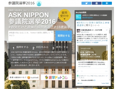 選挙ドットコムはTwitterで政党になんでも質問できる「ASK NIPPON 参議院選挙2016」企画協力をしました。