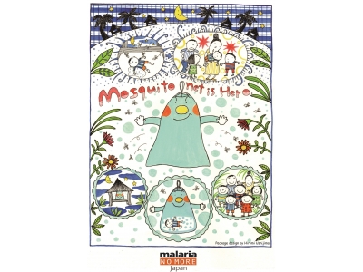 マラリアを紹介するオリジナルデザインパッケージの蚊帳をセネガルで配布