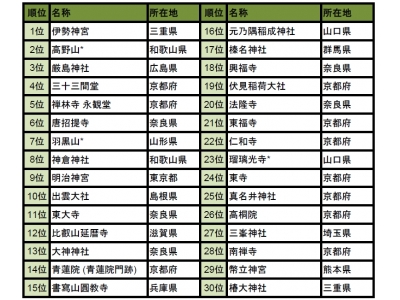 トリップアドバイザー「行ってよかった!日本の神社仏閣ランキング2016」を発表
