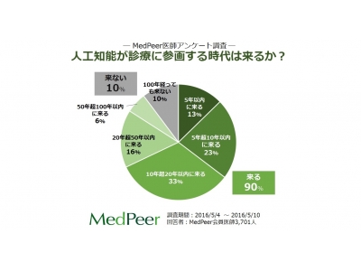 【医師アンケート調査】「人工知能が診療に参画する時代は来るか?」について、医師の9割は「来る」と回答