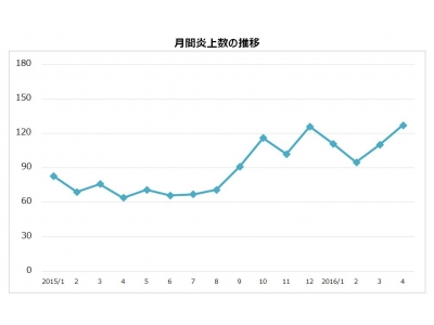 【ネット炎上速報2016年4月版/「ネット炎上」について毎月レポート】前年同月比 約98%の増加4月の炎上件数は127件