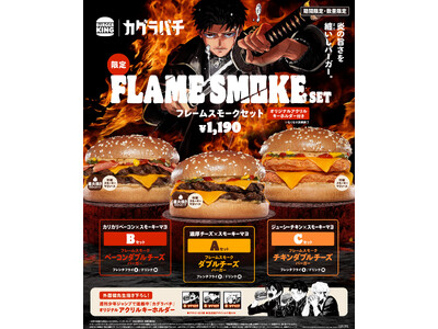 バーガーキング(R)と大人気マンガ『カグラバチ』がコラボ!特製スモーキーマヨソースを使用した本格バーガー「フレームスモーク」セット3種新発売!外薗健先生描き下ろしアクリルキーホルダーが必ず貰える(全3種)