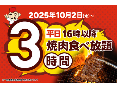 【焼肉食べ放題に革命!】じゅうじゅうカルビの食べ放題が、ゆったり過ごせる3時間にパワーアップ!ご要望にお応えし、ご利用時間を大幅拡大