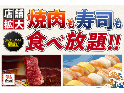 【ご好評につき、提供店舗拡大】焼肉も寿司も、心ゆくまで食べ放題!じゅうじゅうカルビでの食べ放題を、もっと楽しく!