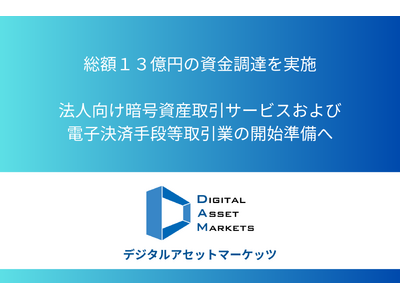 デジタルアセットマーケッツ、法人向け暗号資産取引サービスおよび電子決済手段等取引業の開始に向け、総額13億円の資金調達を実施