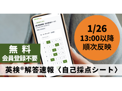 英検(R)解答速報公開(1/26 13:00以降)に合わせ、スタスタAppsが自己採点シートを順次反映