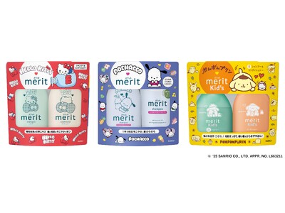“やさしさ・安心感・清潔”を届ける“家族愛”ブランド「merit(メリット)」から、「ハローキティ」「ポチャッコ」「ポムポムプリン」のデザインボトルが初登場! 2025年11月29日、数量限定発売