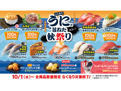 【はま寿司】「うにつつみ」を100円(税込110円)でご提供! 「はま寿司 うにと旨ねた秋祭り」開催!