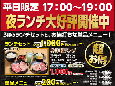【あみやき亭東海エリア】話題の「夜ランチ」対象店舗が拡大!9月29日(月)から仕事帰りや家族利用にぴったりのお得メニューが楽しめる!