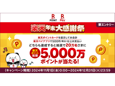 「楽天ペイ」「楽天ポイントカード」、総額5,000万ポイント進呈の年末大感謝祭キャンペーンを実施