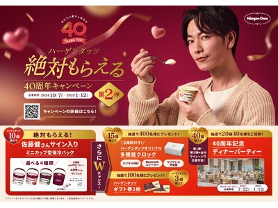 ハーゲンダッツ40周年! 佐藤健さんのサイン入りミニカップ型保冷バッグをプレゼント! 「絶対もらえる 40周年キャンペーン」第2弾 本日、10月7日(月)から2025年1月12日(日)まで実施