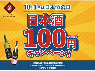 【日本酒40種全品¥100(税込¥110)】10月1日『日本酒の日』キャンペーン|日本酒原価酒蔵全店で開催